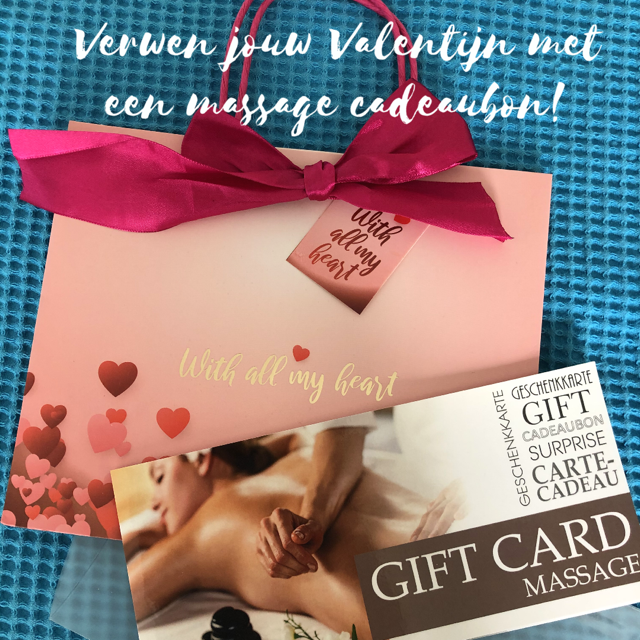 Op 14 februari is het weer Valentijn. Verras jouw lief deze keer eens met een massage cadeaubon. Een massage is het beste cadeau dat je kunt geven. Jouw lief zal helemaal ontspannen en relaxt weer thuis komen.